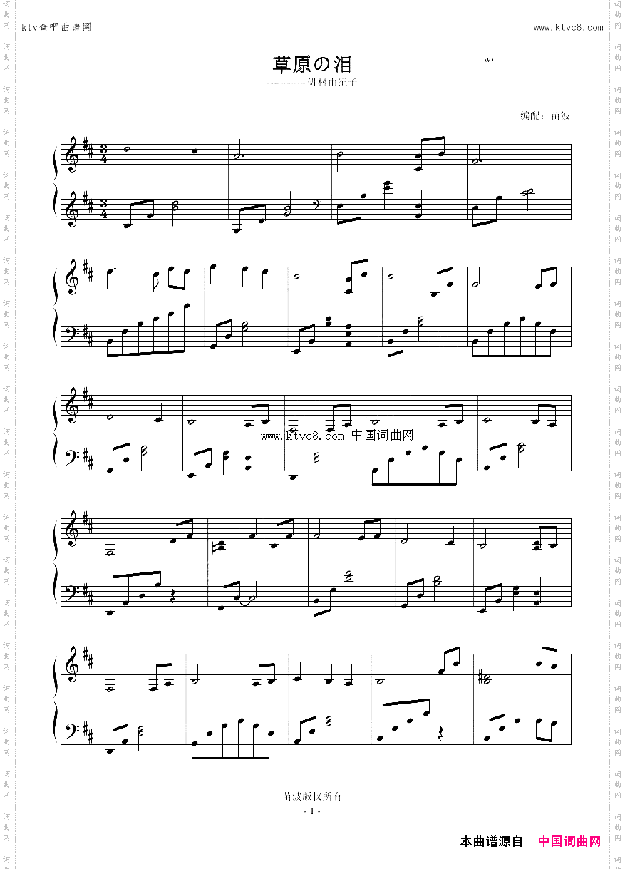 首页 > 器乐 > 钢琴曲谱 / 正文内容_草原の泪-草原の泪,苗波,矶村由纪子钢琴曲谱