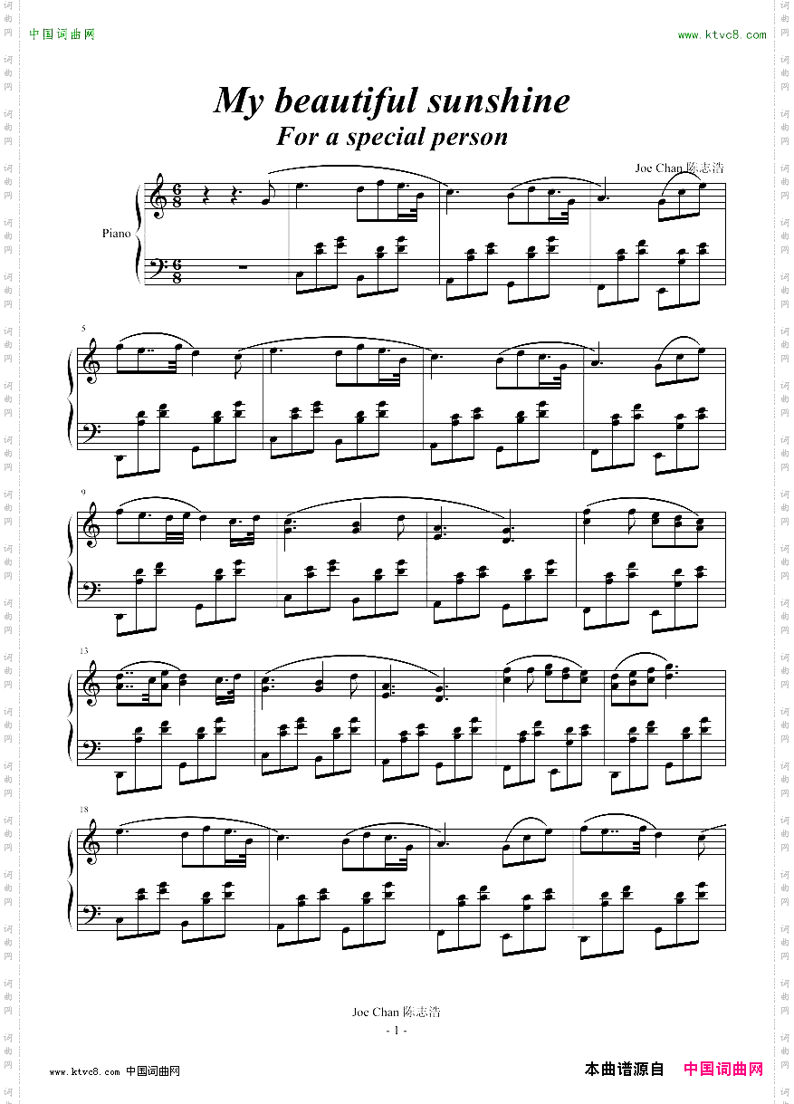 首页 > 器乐 > 钢琴曲谱 / 正文内容_Mybeautifulsunshine-Mrjoeconan钢琴曲谱