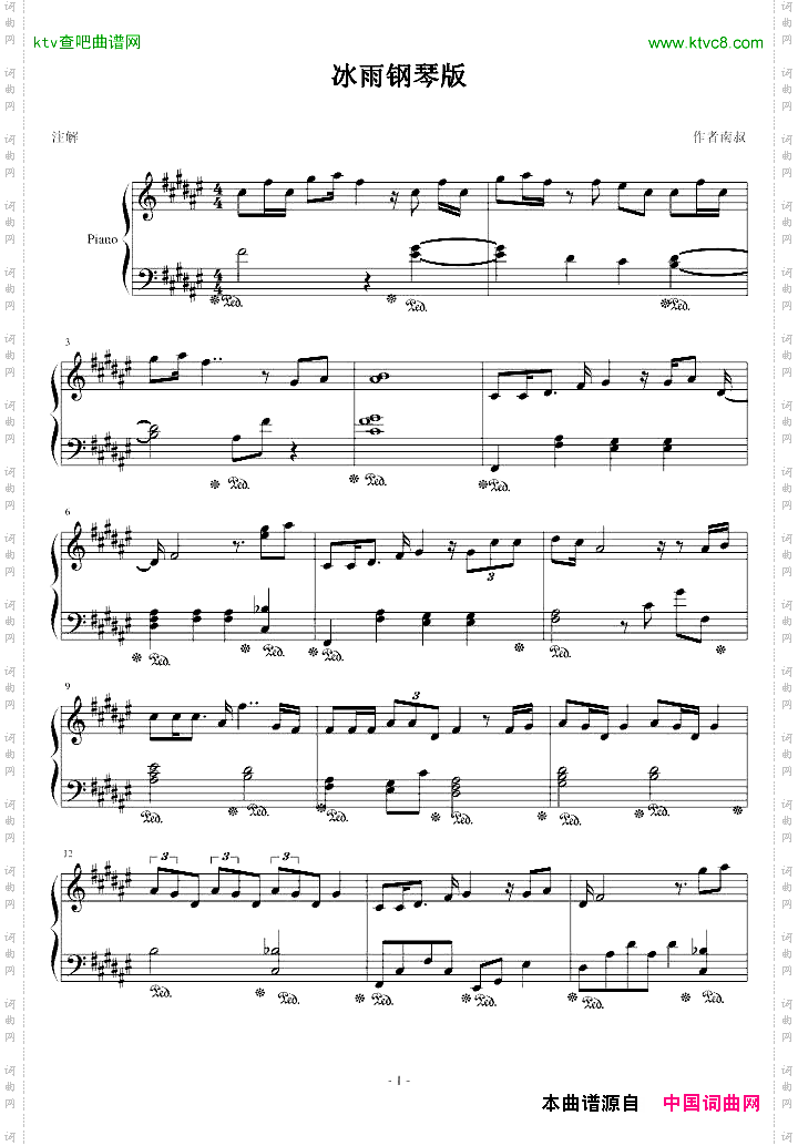 首页 > 器乐 > 钢琴曲谱 / 正文内容_冰雨钢琴版南编-刘德华钢琴曲谱