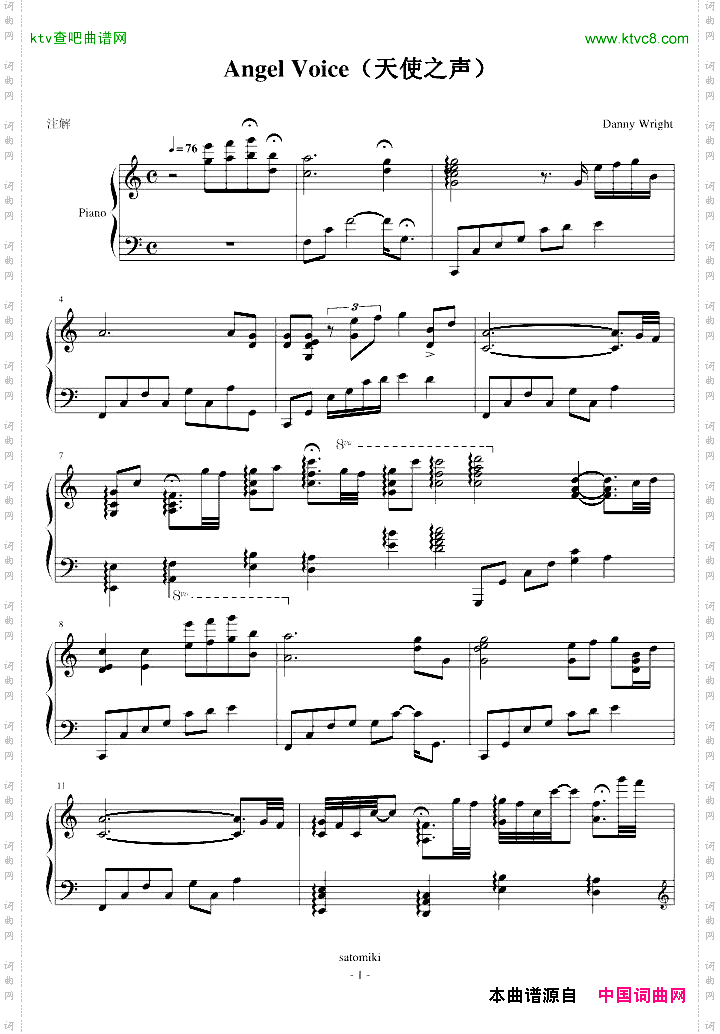 AngelVoice天使之声-DannyWright钢琴曲谱