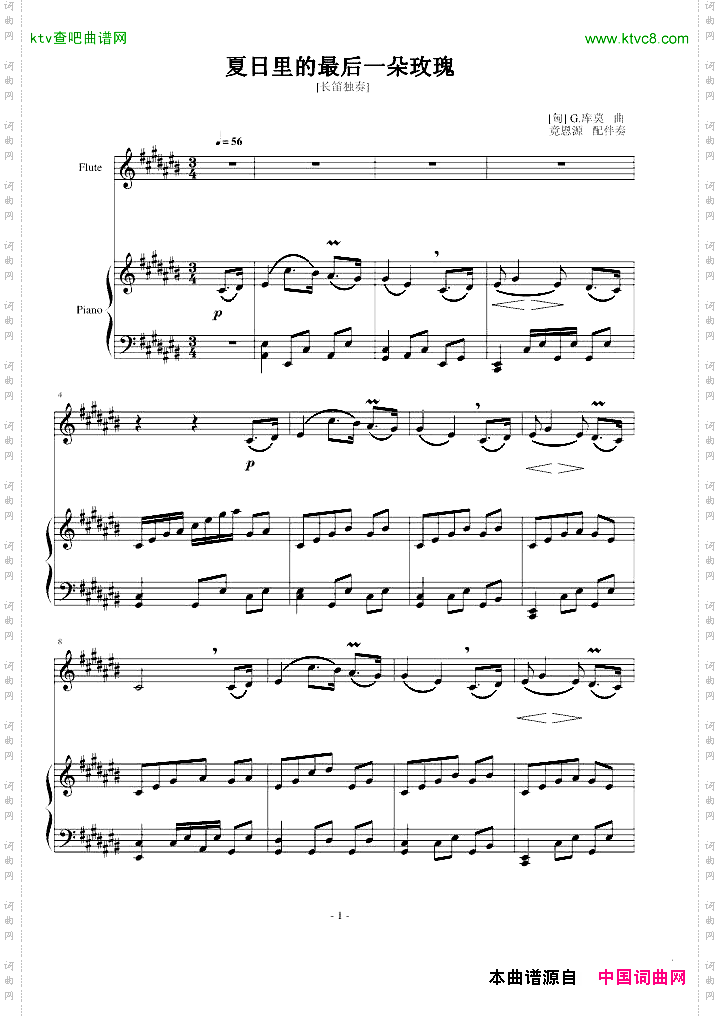 首页 > 器乐 > 钢琴曲谱 / 正文内容_夏日里的最后一朵玫瑰-G·库莫钢琴曲谱