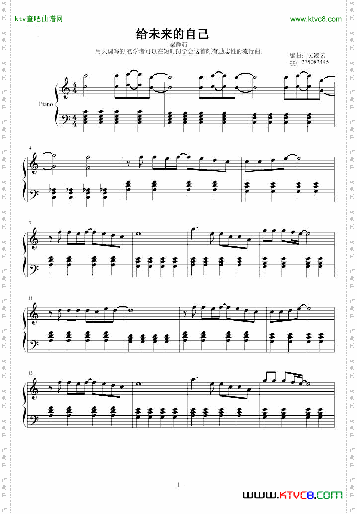 给未来的自己-给未来的自己,李正宗,梁静茹钢琴曲谱