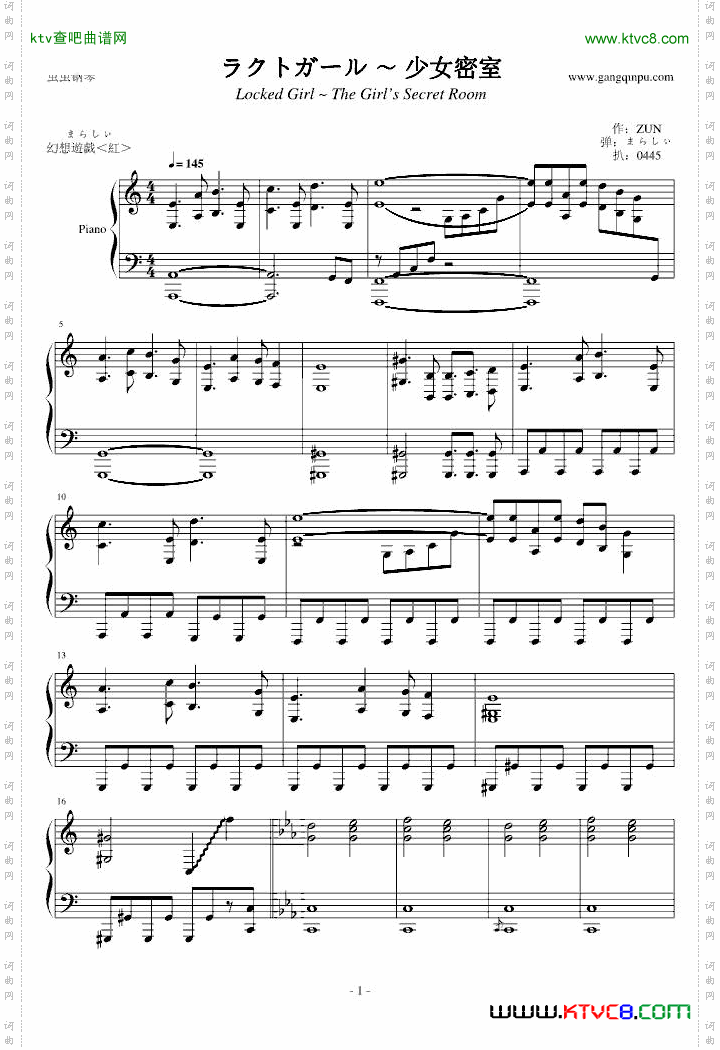 首页 > 器乐 > 钢琴曲谱 / 正文内容_【东方红魔乡】【まらしぃ】ラクトガール~少女密室-东方project钢琴曲谱