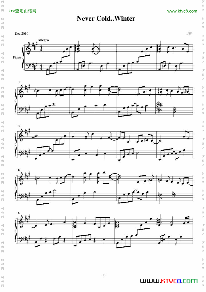 首页 > 器乐 > 钢琴曲谱 / 正文内容_NeverCold..Winter-零钢琴曲谱