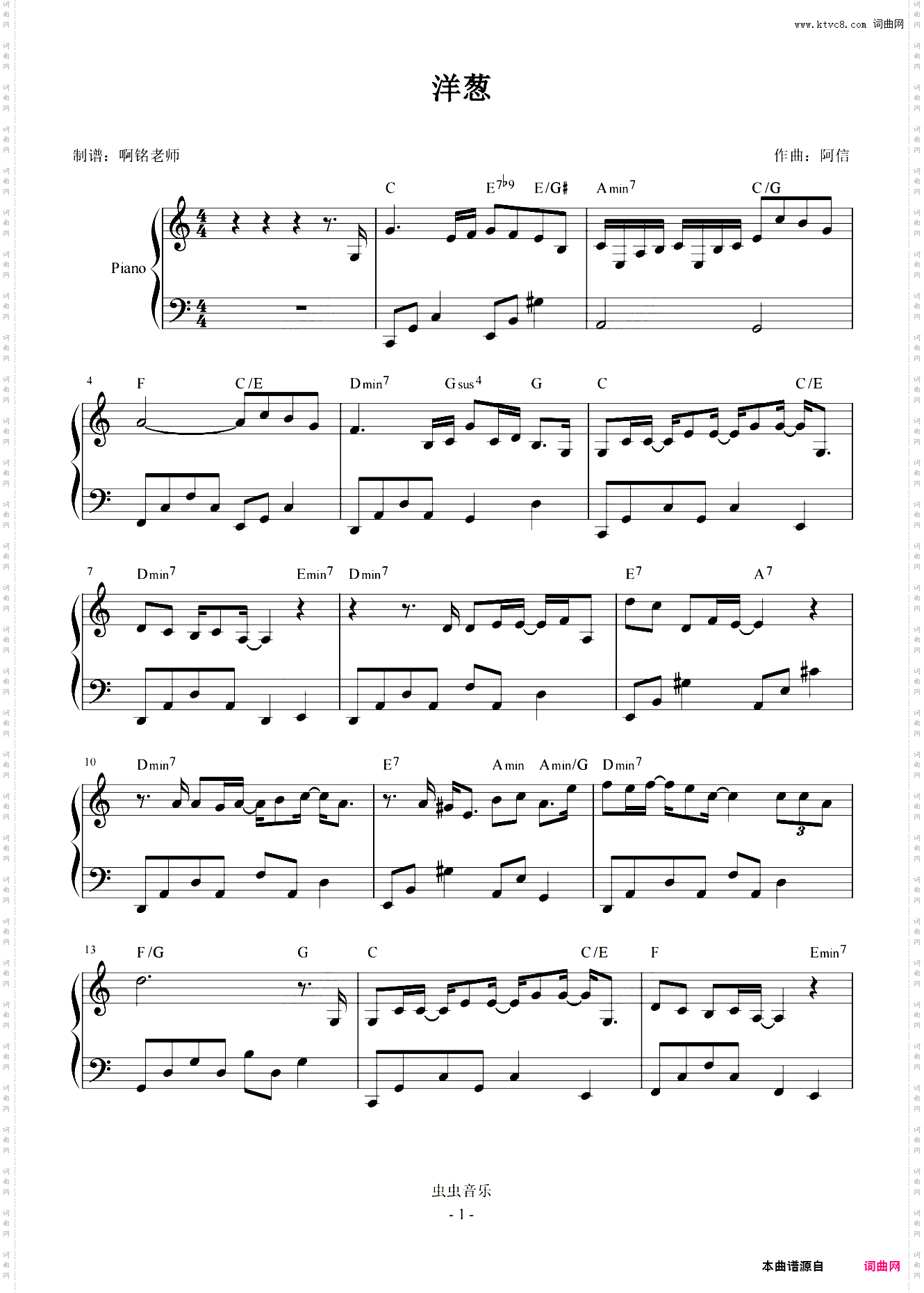 首页 > 器乐 > 钢琴曲谱 / 正文内容_洋葱 C调 最易上手-阿信,阿信,杨宗纬钢琴曲谱
