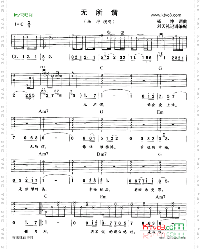 首页 > 器乐 > 吉他曲谱 / 正文内容_无所谓-刘天礼-吉他曲谱