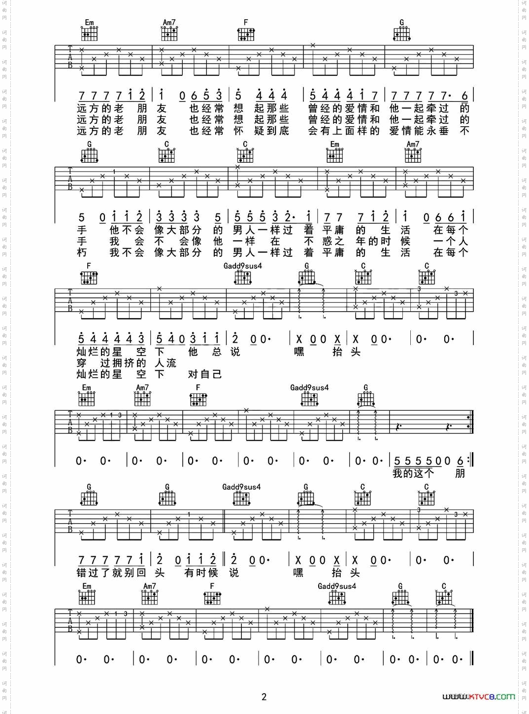 首页 > 器乐 > 吉他曲谱 / 正文内容_嘿,抬头吉他六线谱-贰佰吉他曲谱