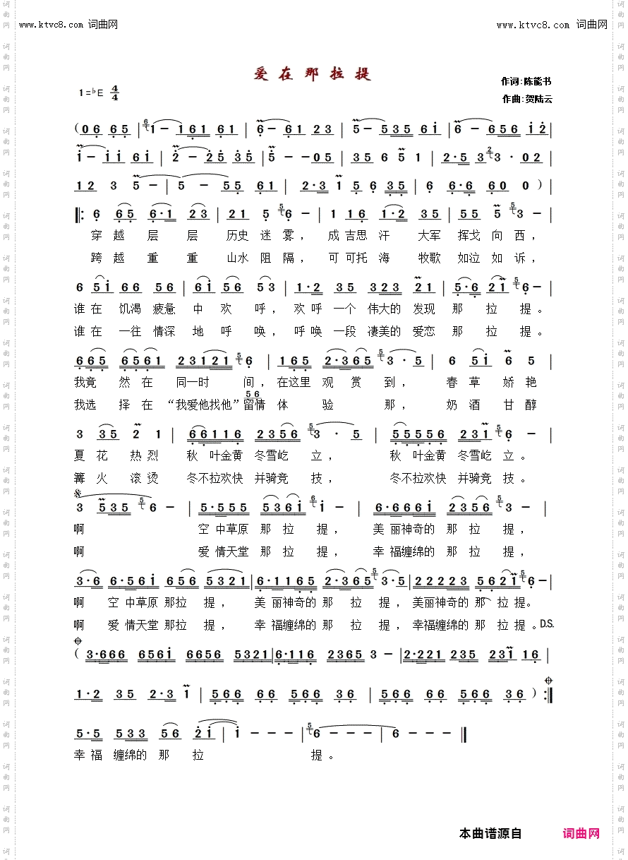 首页 > 声乐 > 简谱 / 正文内容_爱在那拉提-爱在那拉提,陈能书,贺陆云简谱