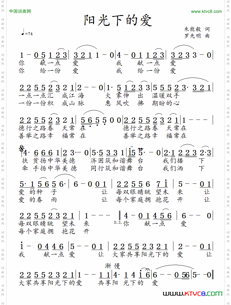 阳光下的爱-阳光下的爱,朱能毅,罗先明简谱