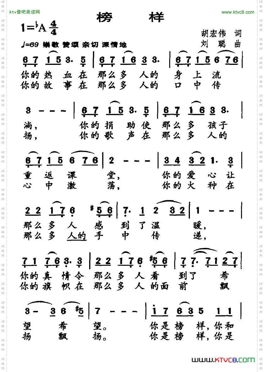 首页 > 声乐 > 简谱 / 正文内容_榜样胡宏伟词刘聪曲-胡宏伟,刘聪简谱