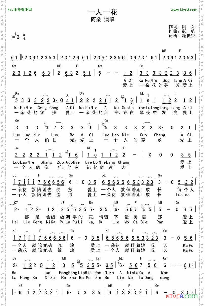 首页 > 声乐 > 简谱 / 正文内容_一人一花-一人一花,阿朵简谱