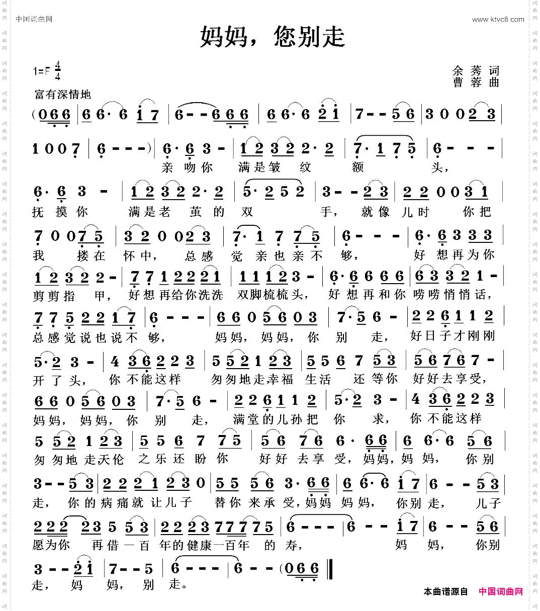 首页 > 声乐 > 简谱 / 正文内容_妈妈,您别走-妈妈,您别走简谱