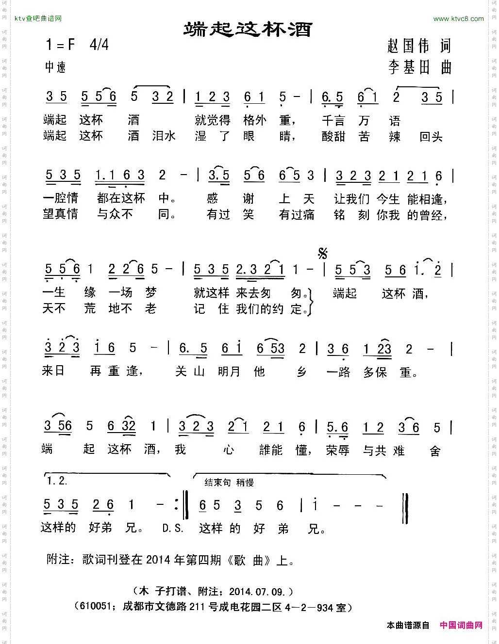 首页 > 声乐 > 简谱 / 正文内容_端起这杯酒-端起这杯酒,赵国伟,李基田简谱
