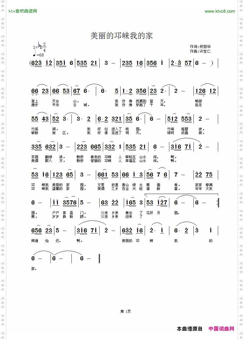 首页 > 声乐 > 简谱 / 正文内容_美丽的邛崃我的家-何丽华,许宝仁简谱