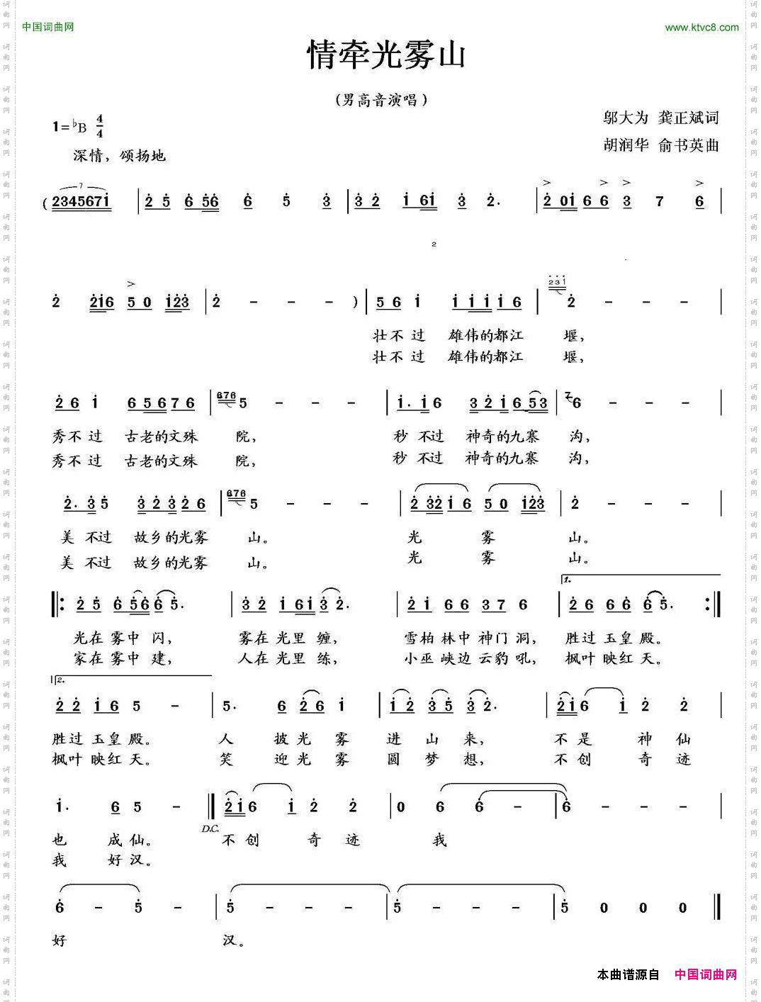 首页 > 声乐 > 简谱 / 正文内容_情牵光雾山-情牵光雾山,邬大为,胡润华,俞书英简谱