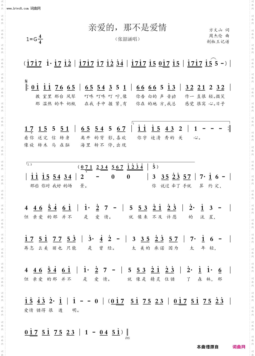首页 > 声乐 > 简谱 / 正文内容_亲爱的那不是爱情_张韶涵-方文山,周杰伦,张韶涵简谱