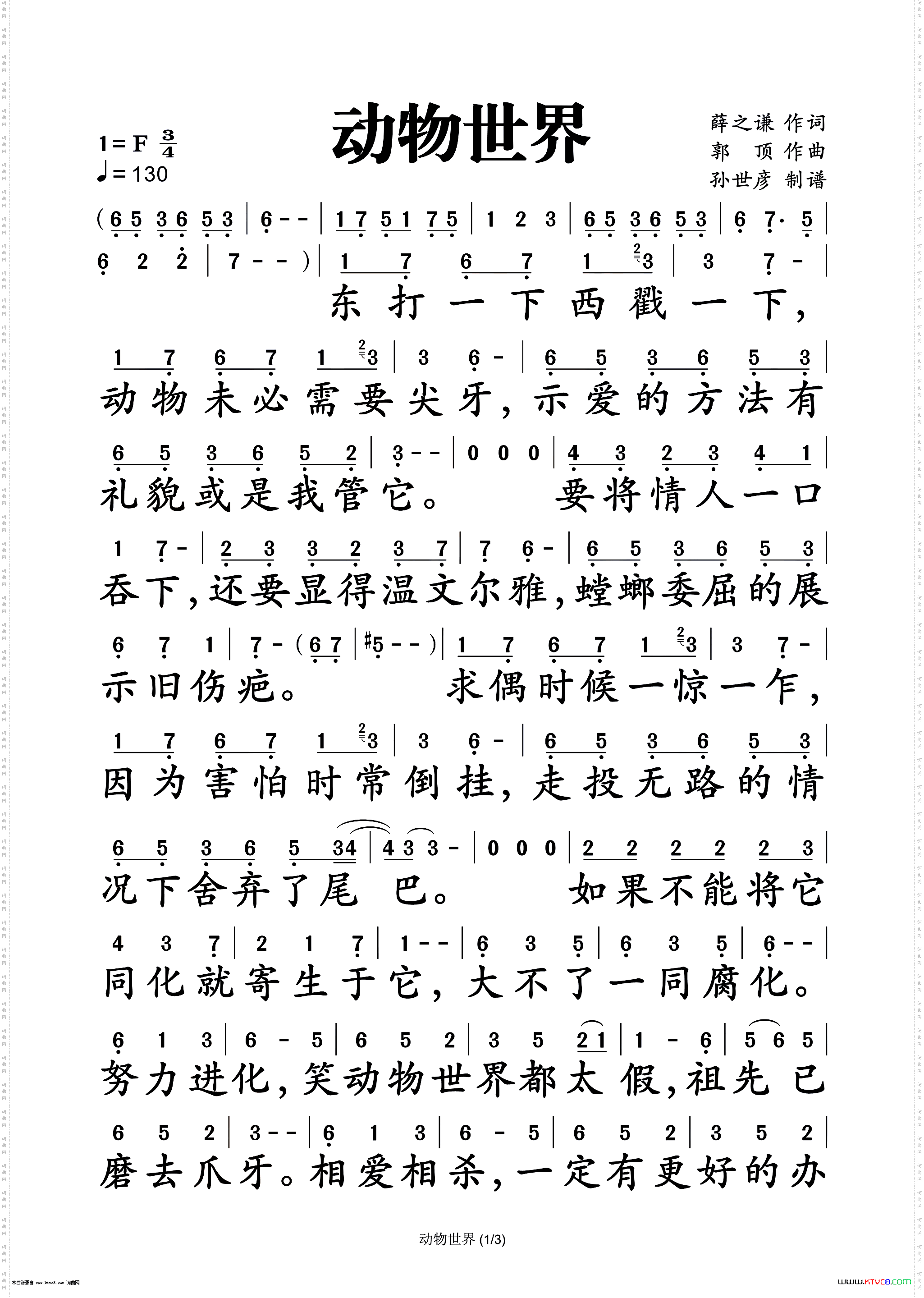 首页 > 声乐 > 简谱 / 正文内容_动物世界-动物世界简谱