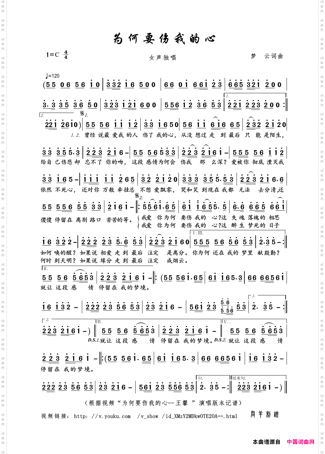 首页 > 声乐 > 简谱 / 正文内容_为何要伤我的心-梦云,梦云简谱