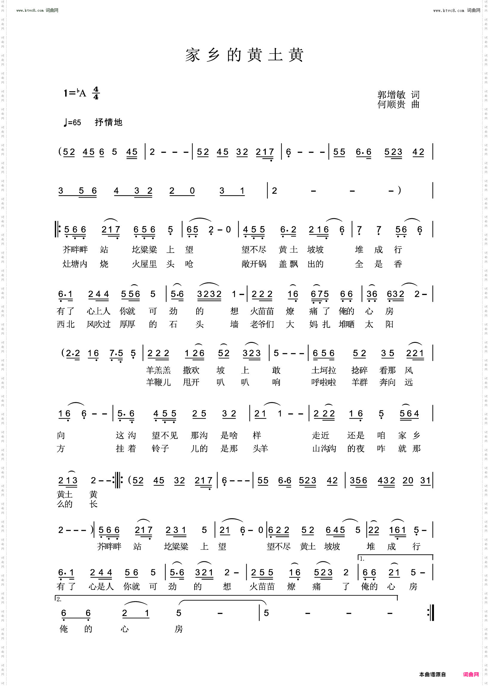 首页 > 声乐 > 简谱 / 正文内容_家乡的黄土黄-家乡的黄土黄,郭增敏,何顺贵简谱