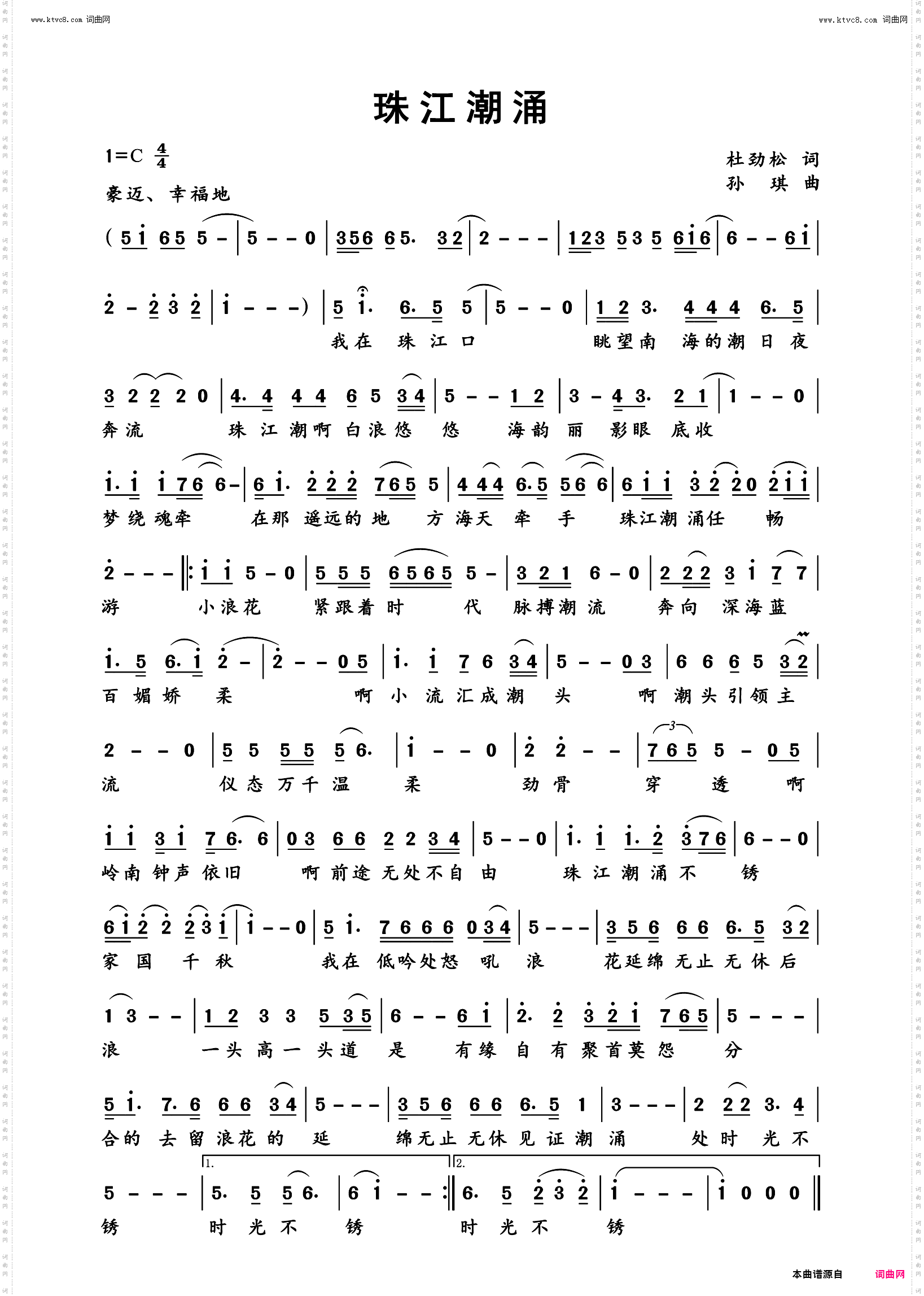 首页 > 声乐 > 简谱 / 正文内容_珠江潮涌-珠江潮涌,杜劲松,孙琪简谱